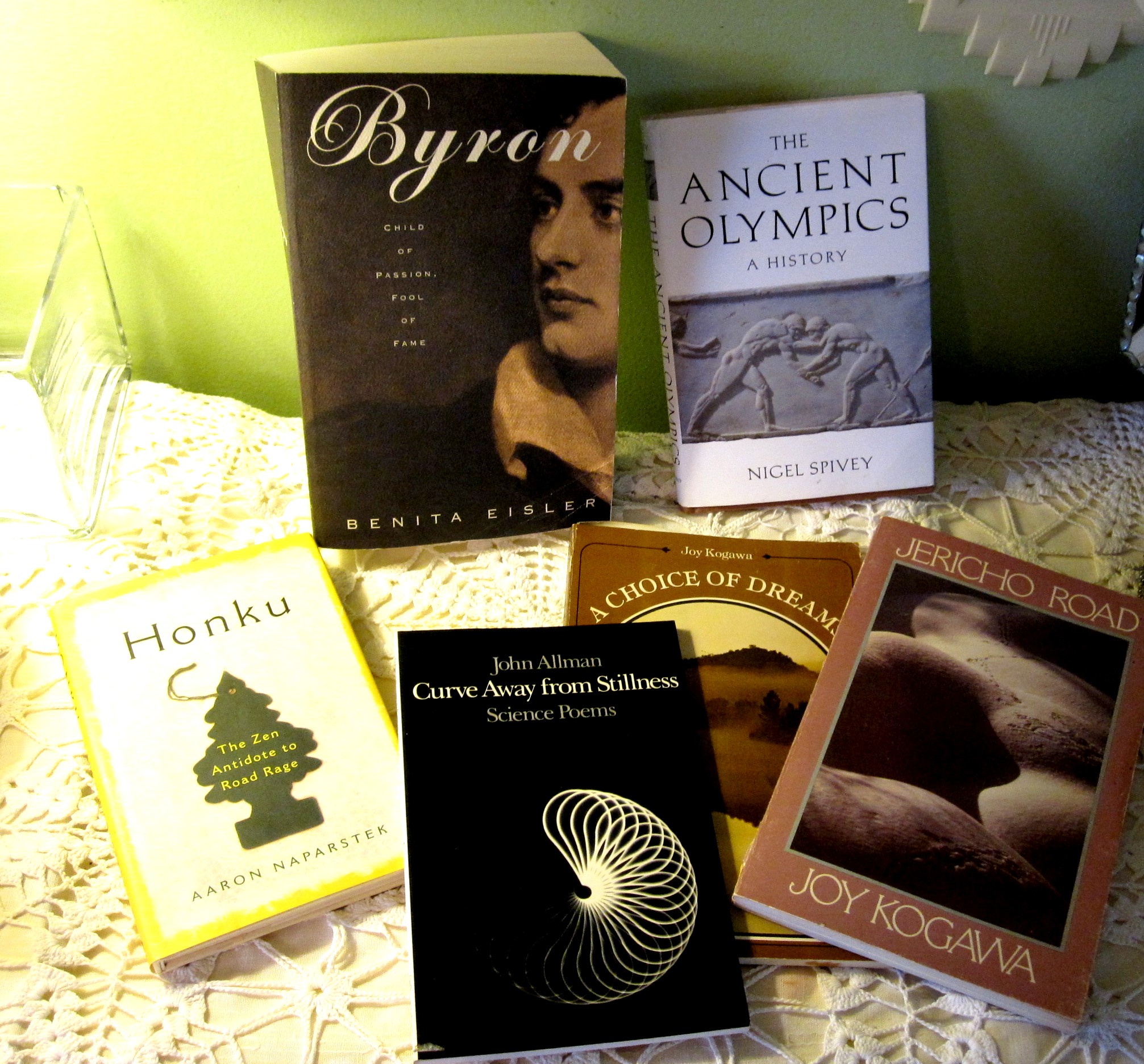 So what did I buy in my 10 minute browse through the sale, thinking (mistakenly) that I’d be back the next day.  About a decade ago, I did a major book purge, and discovered that books of poetry held up very well as keepers.  So, I went straight to the poetry section and bought . . .