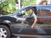 So I run up Dovercourt carrying a stool. My husband would never do such a thing. I recall the time we rented a carpet steam cleaner and I pulled the wheeled machine along with my scarf. He found that embarrassing. Is this related to the sock-pocket, a gender thing? (see previous blog, Fluids on the run, a tip) I get honked at and see that it is a running buddy, I haven’t seen for awhile though we have been trying to reconnect for a run. So we make a date for next Friday and he offers a drive, which I decline. I take his photo and ask his permission to post it on the blog. Making it the the third person I’ve mentioned my blog to on this very short run.