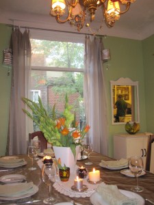 In preparing for the meal, I violated one of my main rules of stress avoidance, which is “never shop on the same day that you entertain”, except for flowers and fresh bread. And have enough done in advance that you can easily fit in a run”. Happily, in spite of cleaning, cooking and shopping on the day-of, preparations were relaxed. As for the run, I have to confess that it was touch and go however I had put it on the optional list for the day because I had decided to race. At 4:30 p.m. I ran 20 minutes, to stay loose but with the long run the previous day and a 5K on Thanksgiving Monday, backing off was in order.