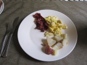 He reported on what he had been doing while I was running for 3 hours and 20 minutes. He bought vegies and bread at the farmer’s market, meat at the Grace street meat market and brunch was about to be served.
