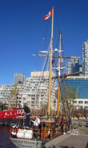 I weave through the outdoor photo gallery on York Quay, the subjects are always Canadian content and enviroment and landscape related.   Then east to the Music Garden where a large team of teens were involved in dismantling the rigging for two tall ships.  Three miles to go, seems less so, when it is a well-worn route.