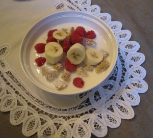 I woke at 5 a.m. and left for my run just after 6 a.m. I like to get up early because it gives me time to relax and enjoy a coffee before the run. I ran to the lake and then a bit westward. Lately, breakfast has been mini-wheats, a favourite of my husband’s. I got out the door a bit late, with trying to figure out what to take to work with the planned run home.