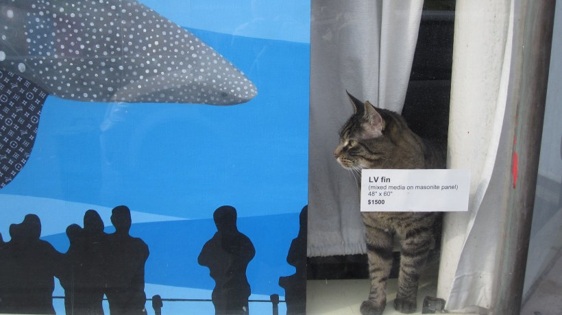 A final photograph, taken of a storefront.  Is that cat real or painted?  Only the photographer knows for sure.