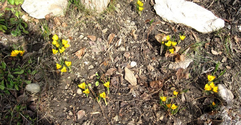 In 2008 our front yard crocus blossomed on April 5th and in 2009 it blossomed on March 21st. In spite of this late arriving spring, the crocus blossomed a bit earlier than these years, flowering just in time for St. Patrick’s Day.