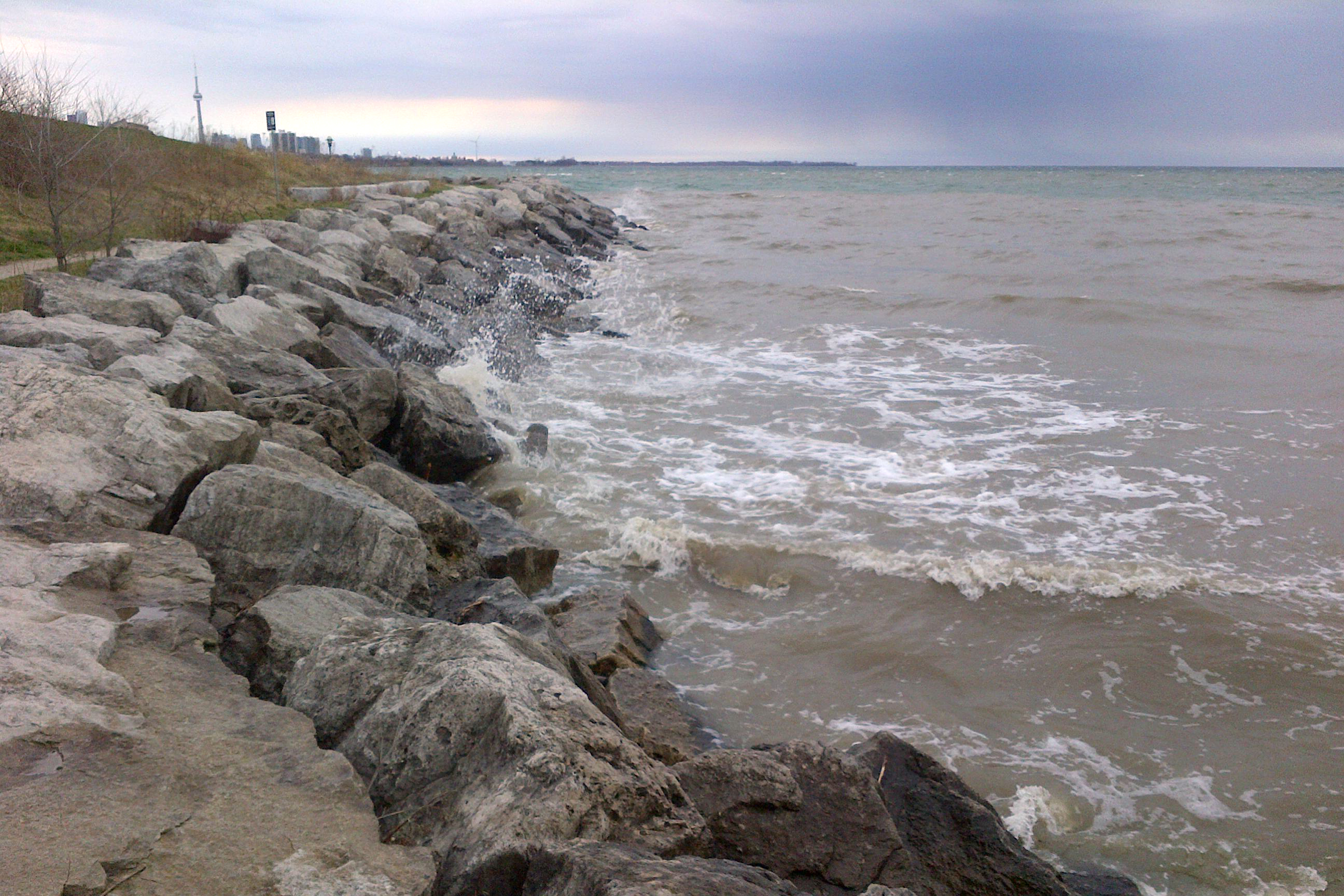The most important day of the week for good weather is the day of the long run. I was disappointed by the forecast of wind and rain. Boo!! When I woke this morning I checked the weather forecast and it showed that appearance of rain was slightly delayed. I left the house at 7:30 a.m. hoping upon hope for a further delay to the rain. Taking the 30K easterly wind into account, I planned a run along the lake heading west and then a trek north through a forested area by the Humber River.