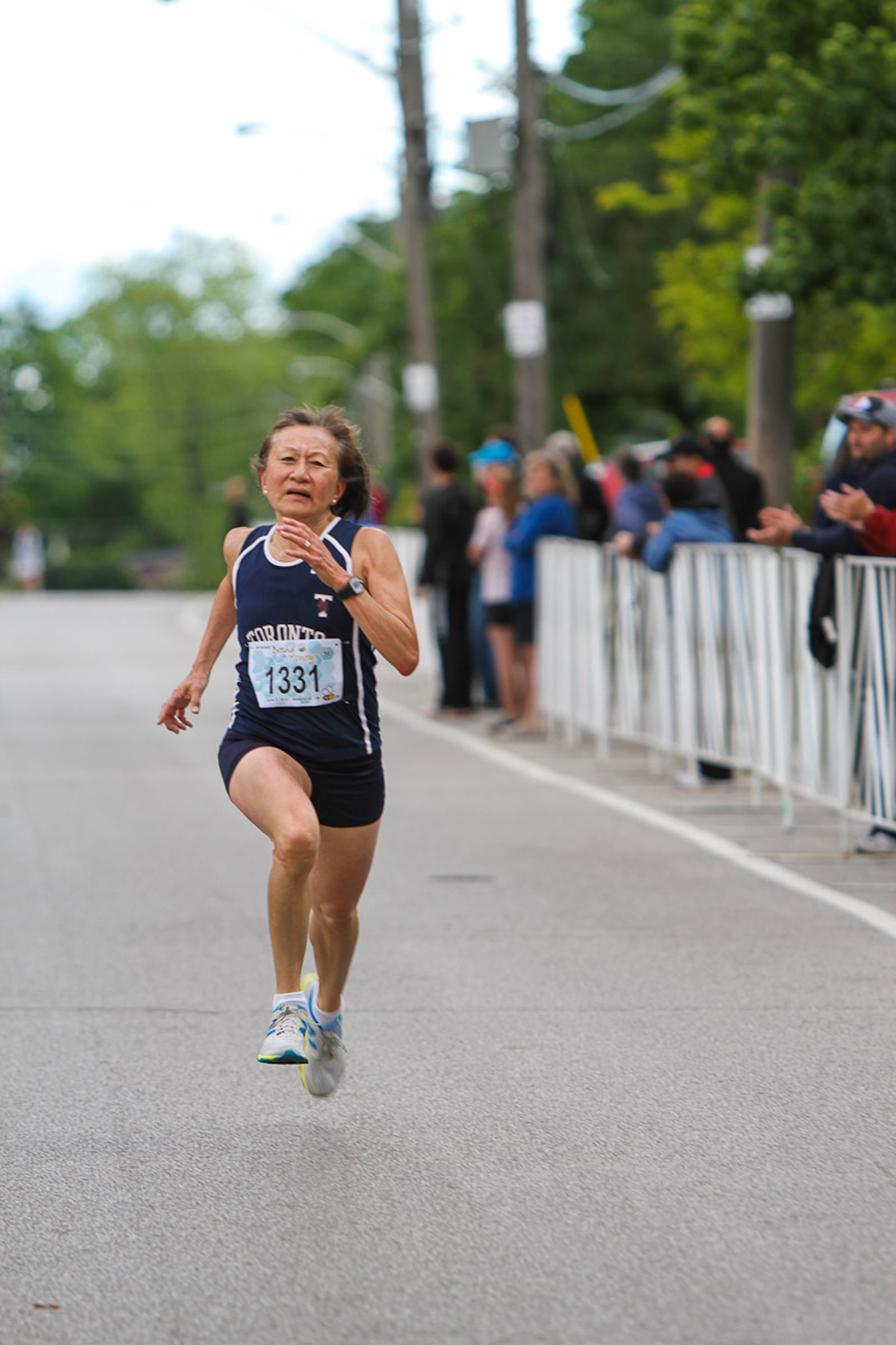 I ran a good steady-hard pace throughout and was satisfied with my time of 21:56 at the Toronto Challenge 5K on a muggy, hot day. The route was changed from last year and I noticed that times were much slower than 2011. One friend wondered if the course might have been long by 400 meters. It was not an ideal course to run a season’s best but psychologically it felt shorter than the many-cornered 5K I ran the week before. The course had only four turns. For me the main factors in falling short of my time were ideal racing weight, the heat and a need for more speed-endurance, tempo training. I still hope to go under 20 minutes but I can see it will take a lot of focus, along with more mileage while maintaining the quality speedwork I’ve been doing since February. With my plan to run a marathon in the fall, my fast 5K may have to wait until next spring.
