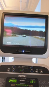 As the day dawned and time constraints were considered, I decided that the most efficient way to get my 13 miler in was to run to the nearest treadmill. The time it takes to go from my front door to a treadmill is under 2 minutes. For longer runs, much time is saved on the treadmill as there are fewer stops and washrooms and water are always near-at-hand.